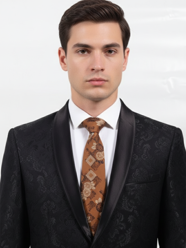 Brown Art Silk Tie with Floral Design