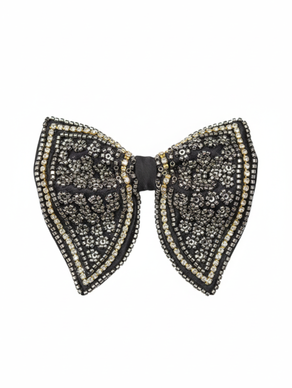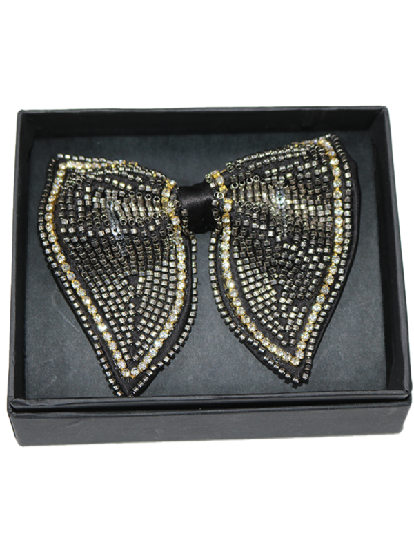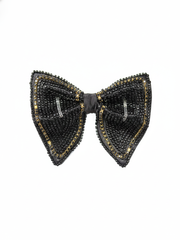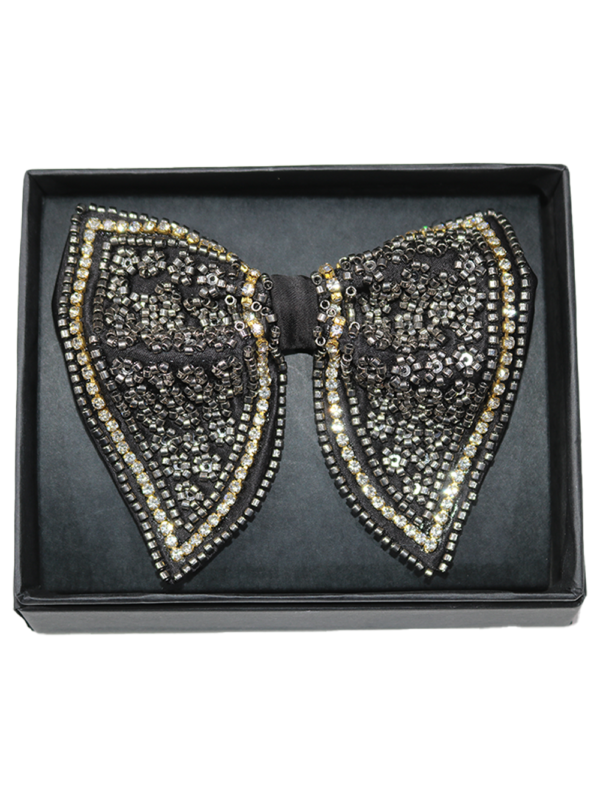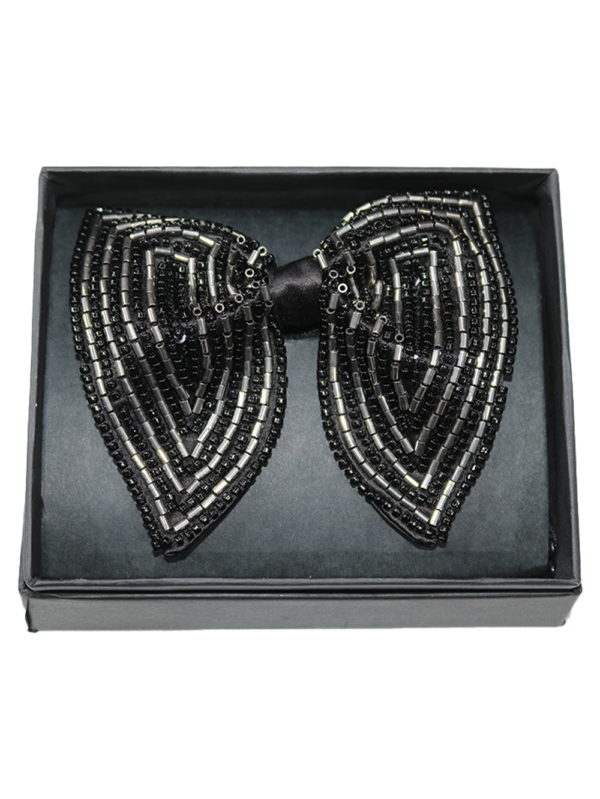 Black Beaded Patterned Butterfly Bow Tie