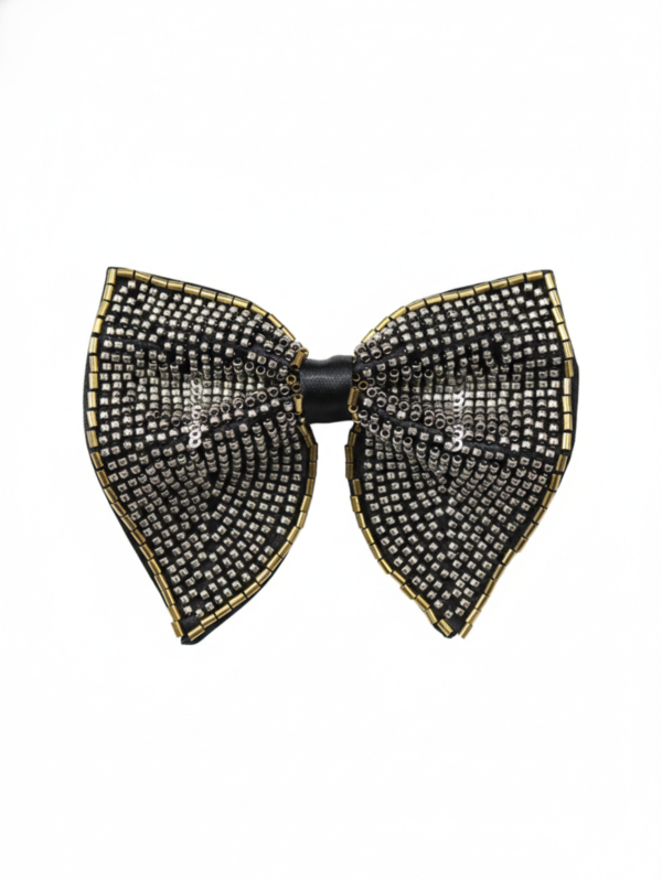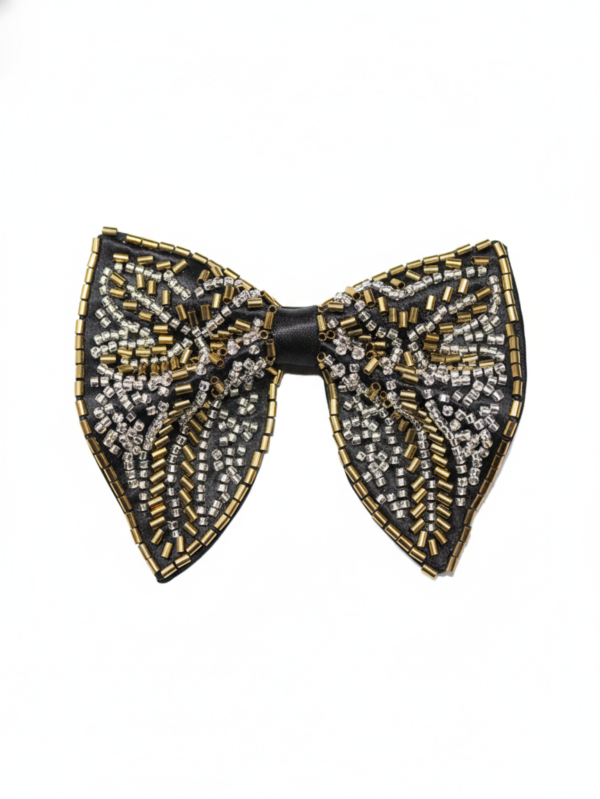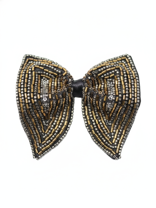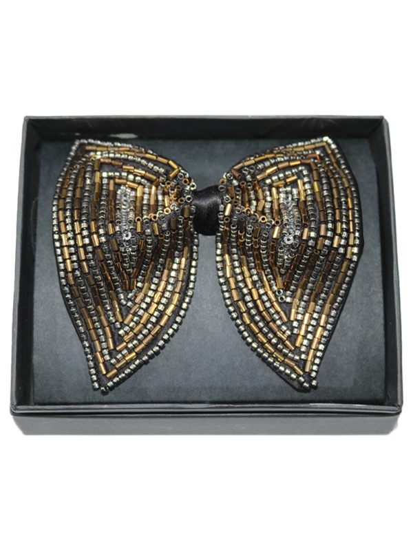Hand-Beaded Metallic Butterfly Bow Tie