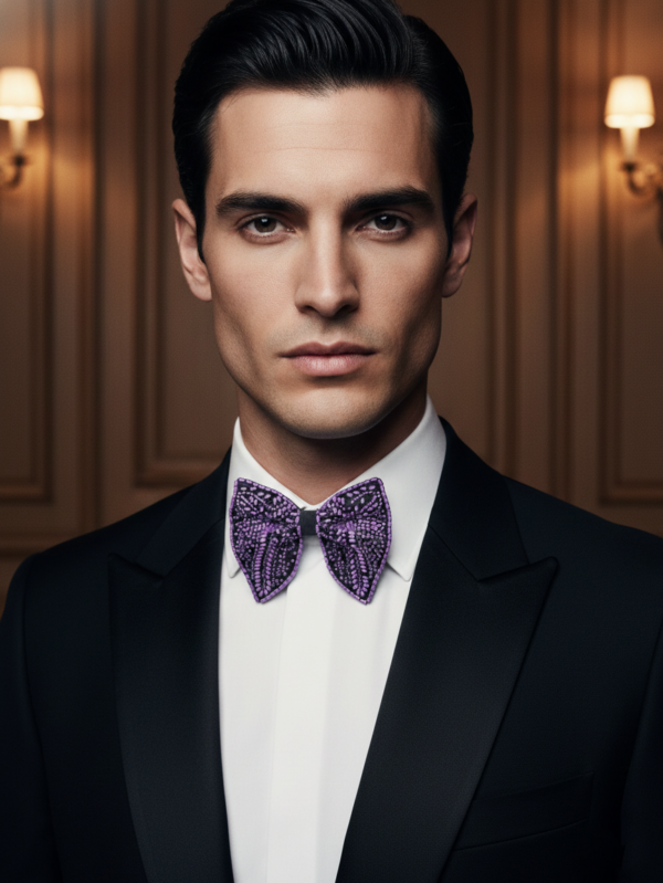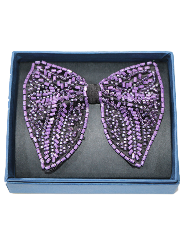 Lavender Purple Beaded Butterfly Bow Tie