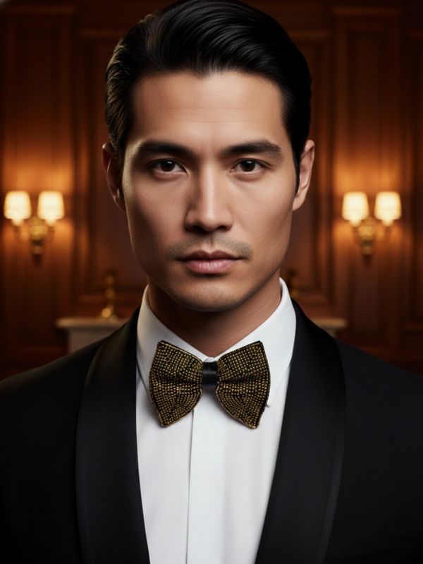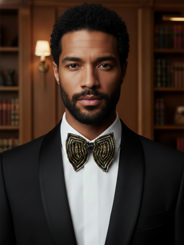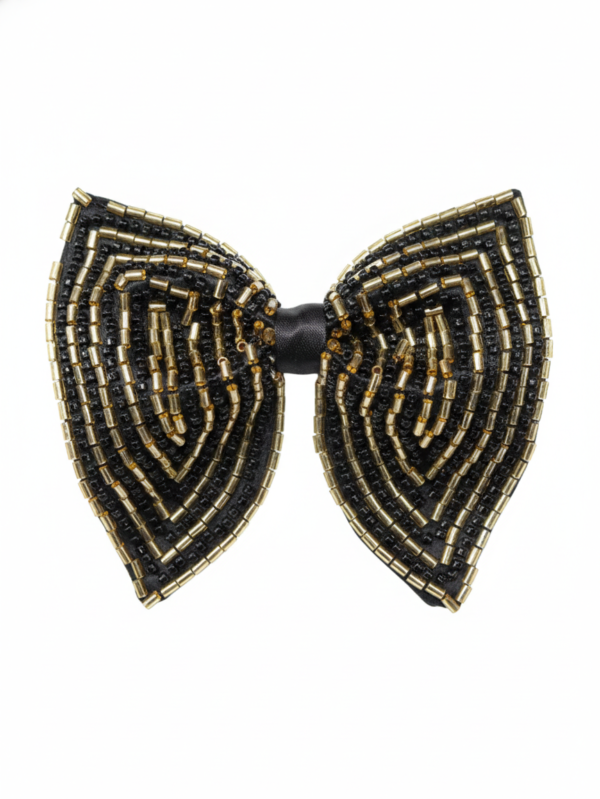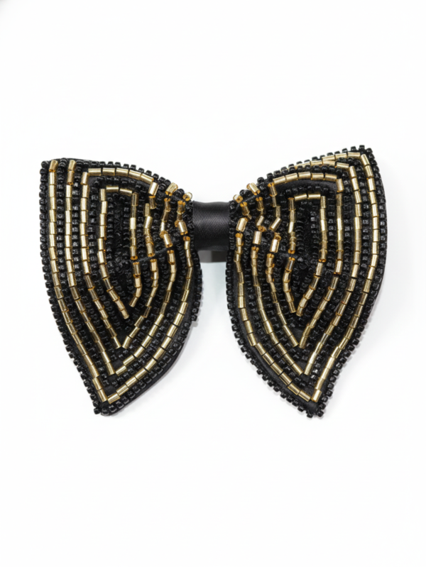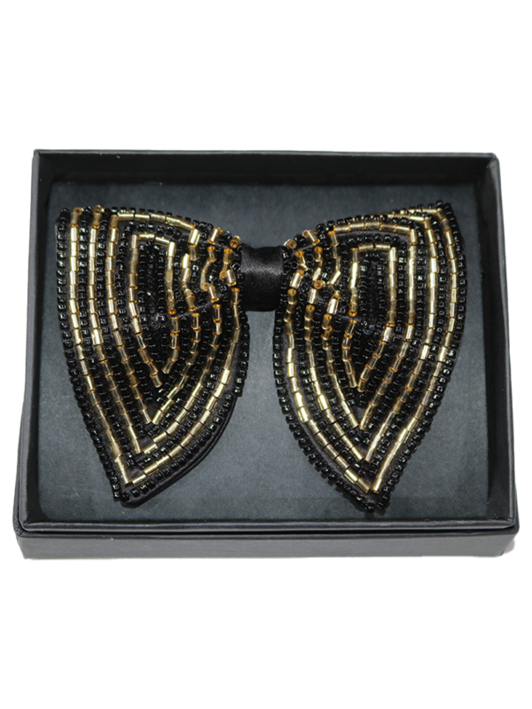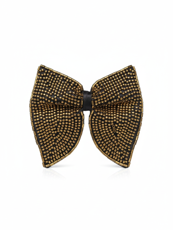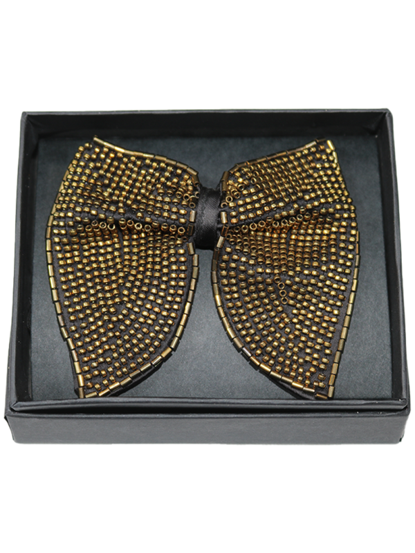Hand-Embroidered Gold Bead Butterfly Bow Tie