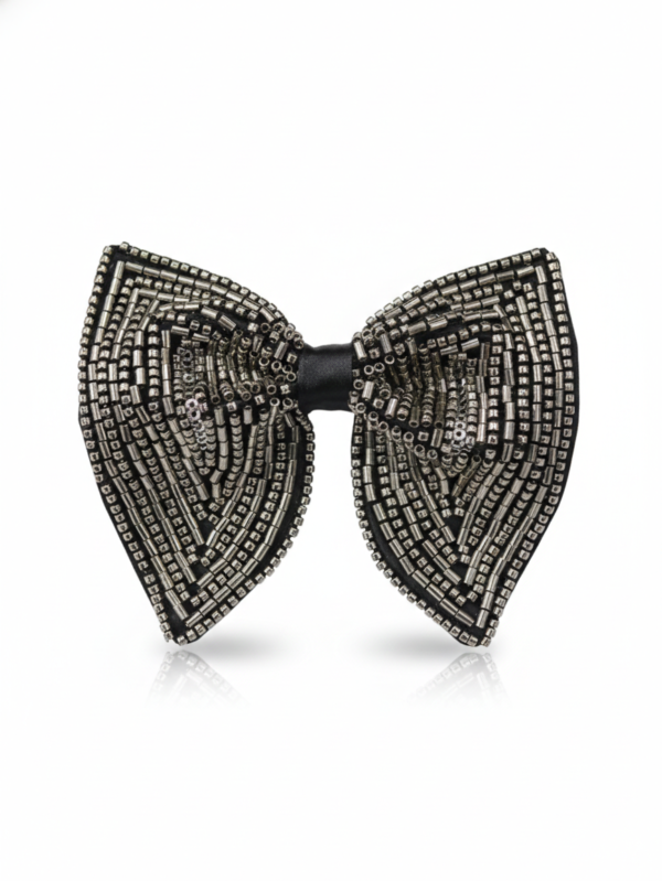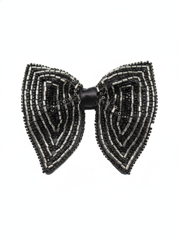 Stealth Onyx & Silver Hand-Beaded Bow Tie
