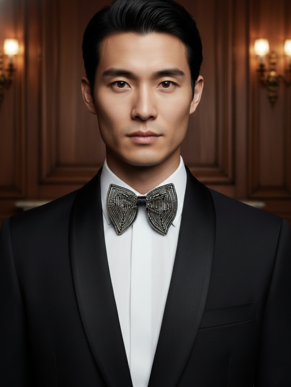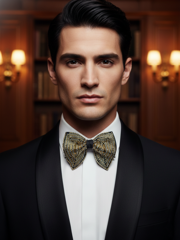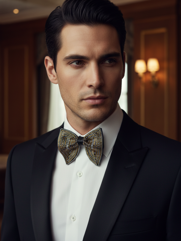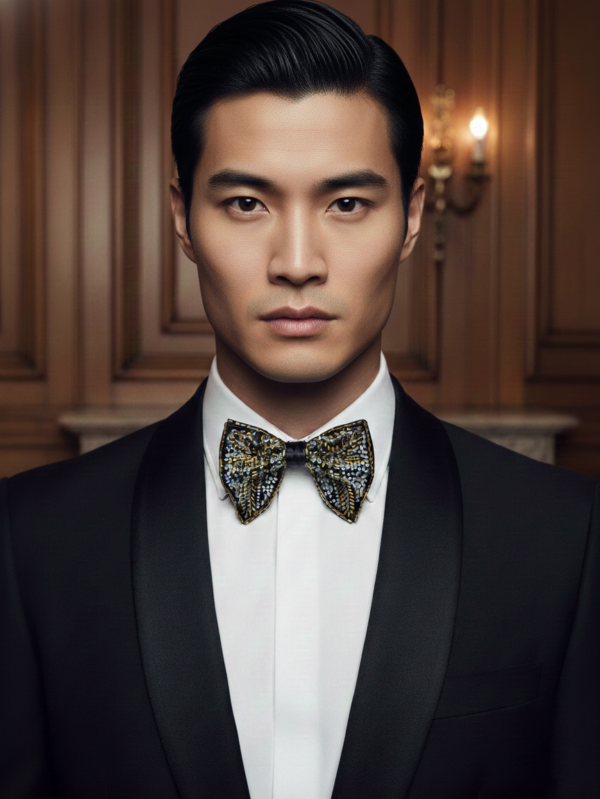 Antique Bronze & Silver Hand-Beaded Luxury Bow Tie