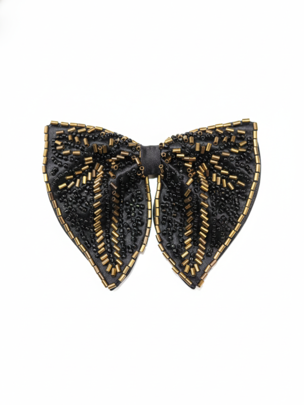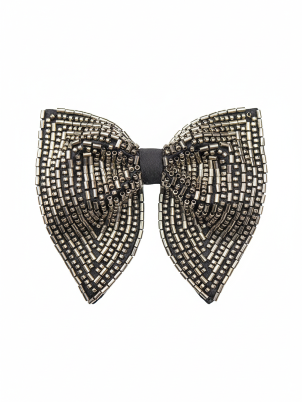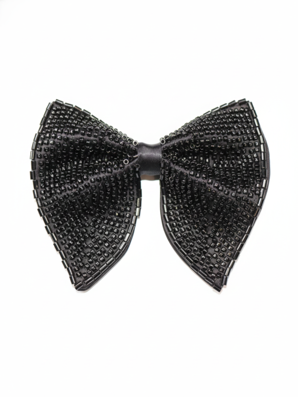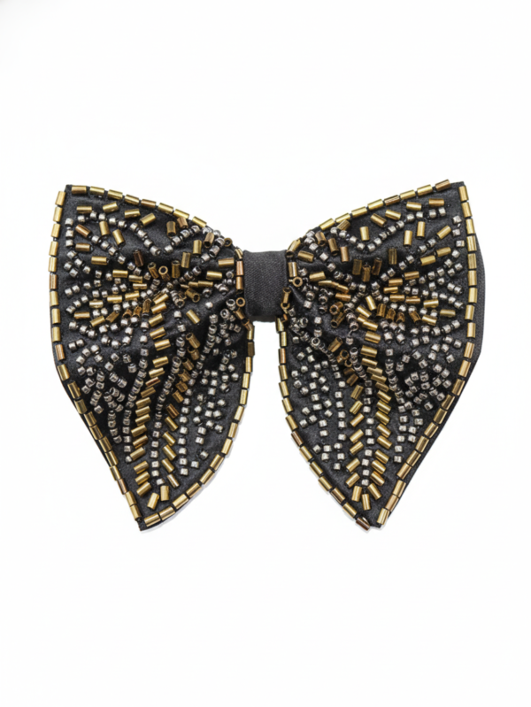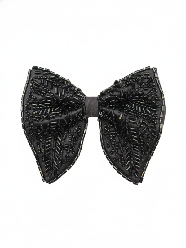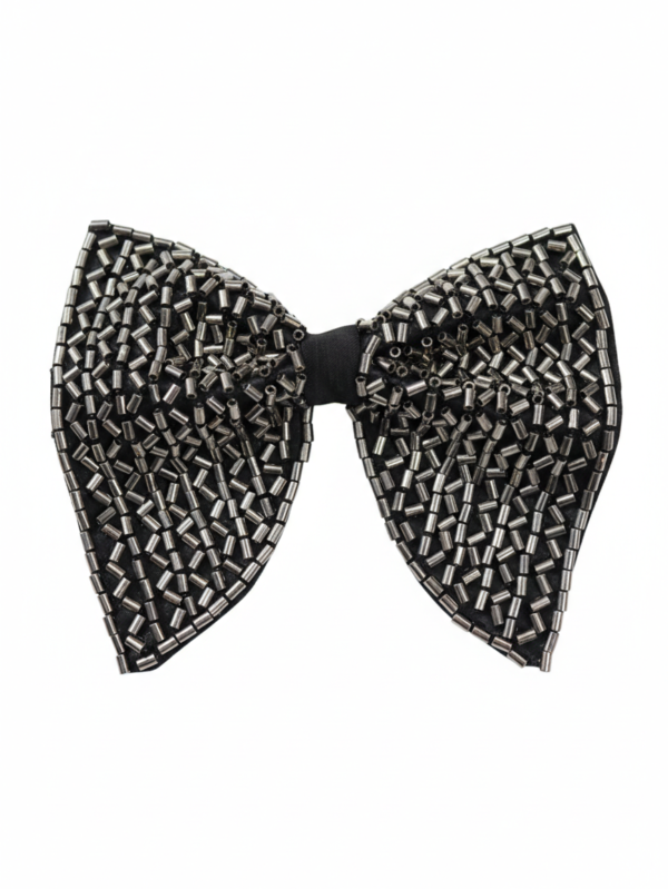Black Metallic Embroidered Hand-Beaded Bow Tie