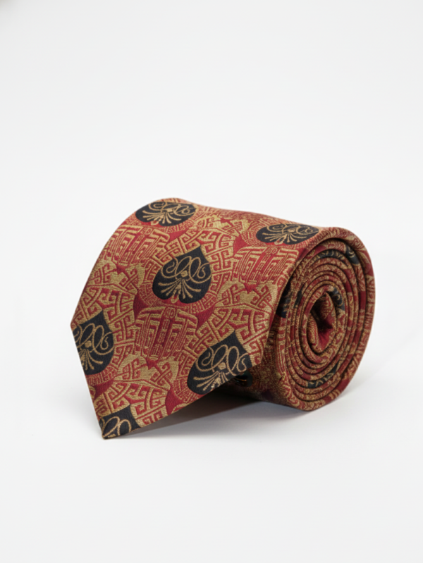 Red Art Silk Tie with Black & Golden Work - Premium Elegant Design