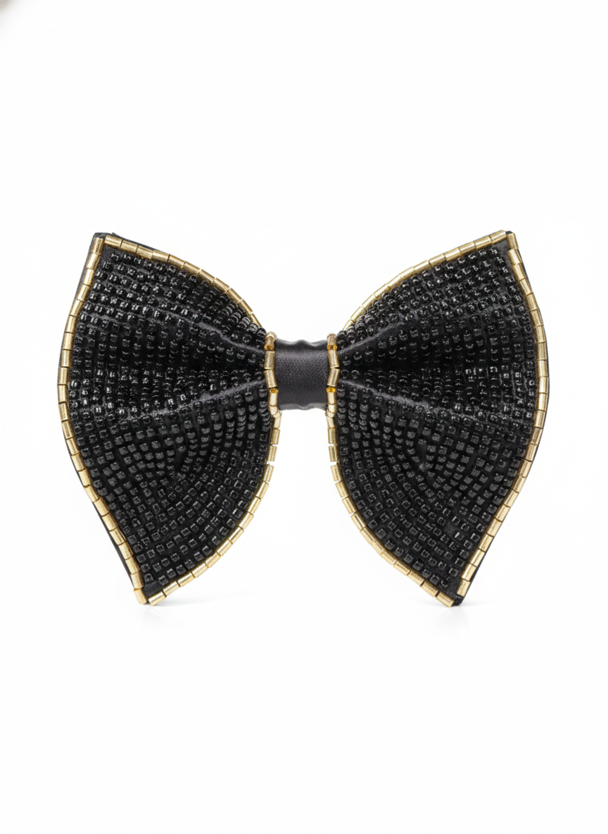 shimmering gold-beaded border. The wide butterfly silhouette provides a